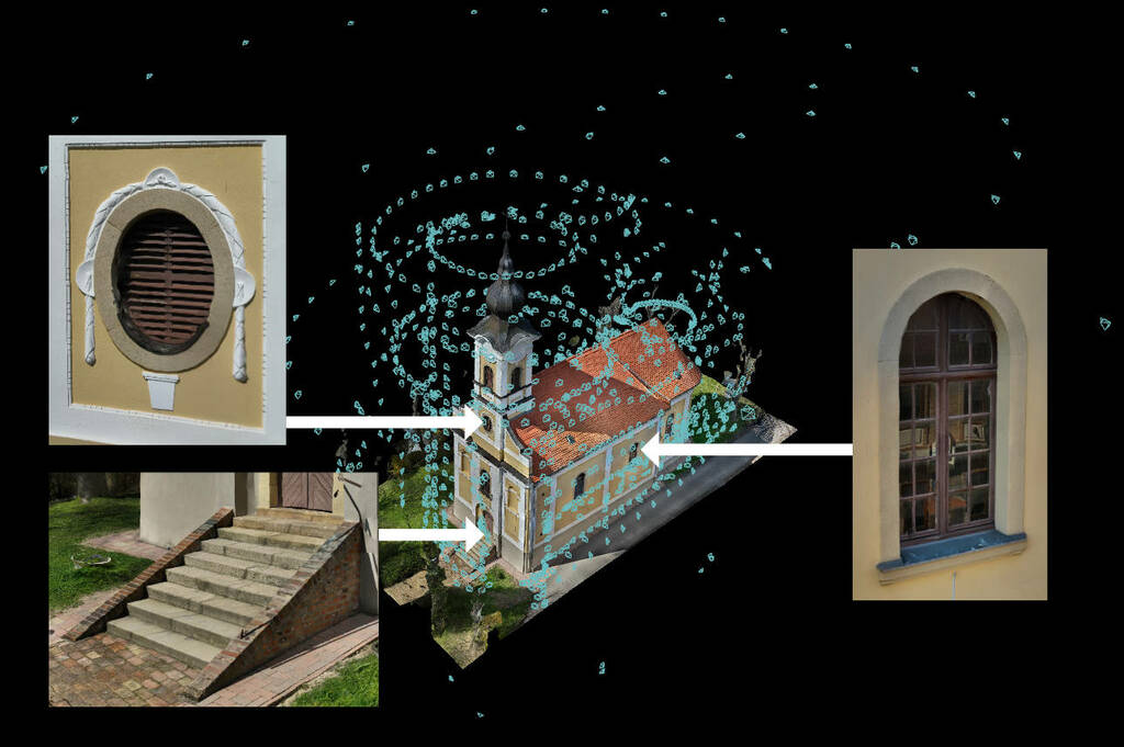 A templom modelljének elkészítéséhez két berepülés során, összesen több mint 1100 db nagyfelbontású fényképet rögzítettünk, ezzel centiméter pontosságot biztosítva.